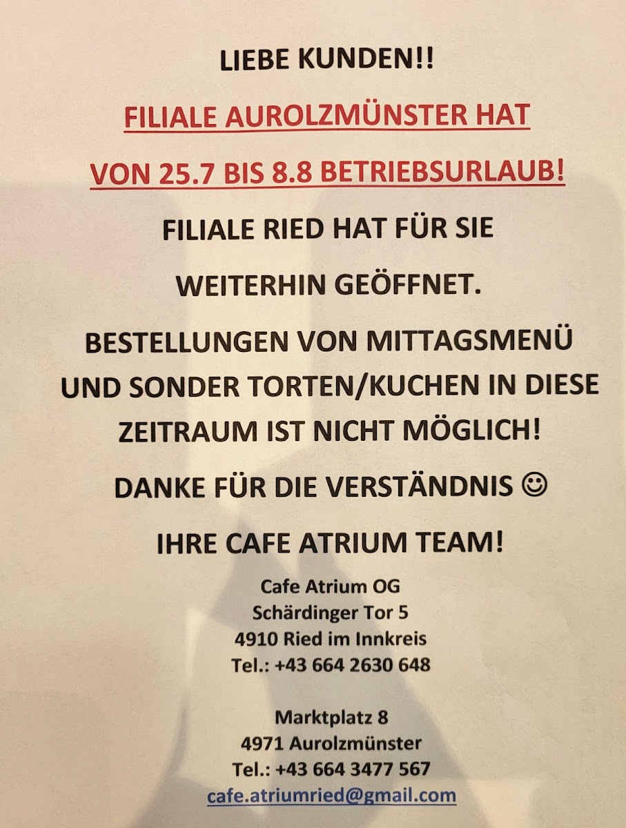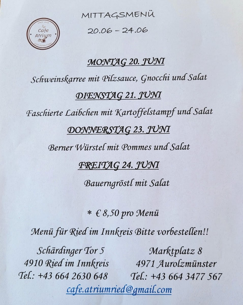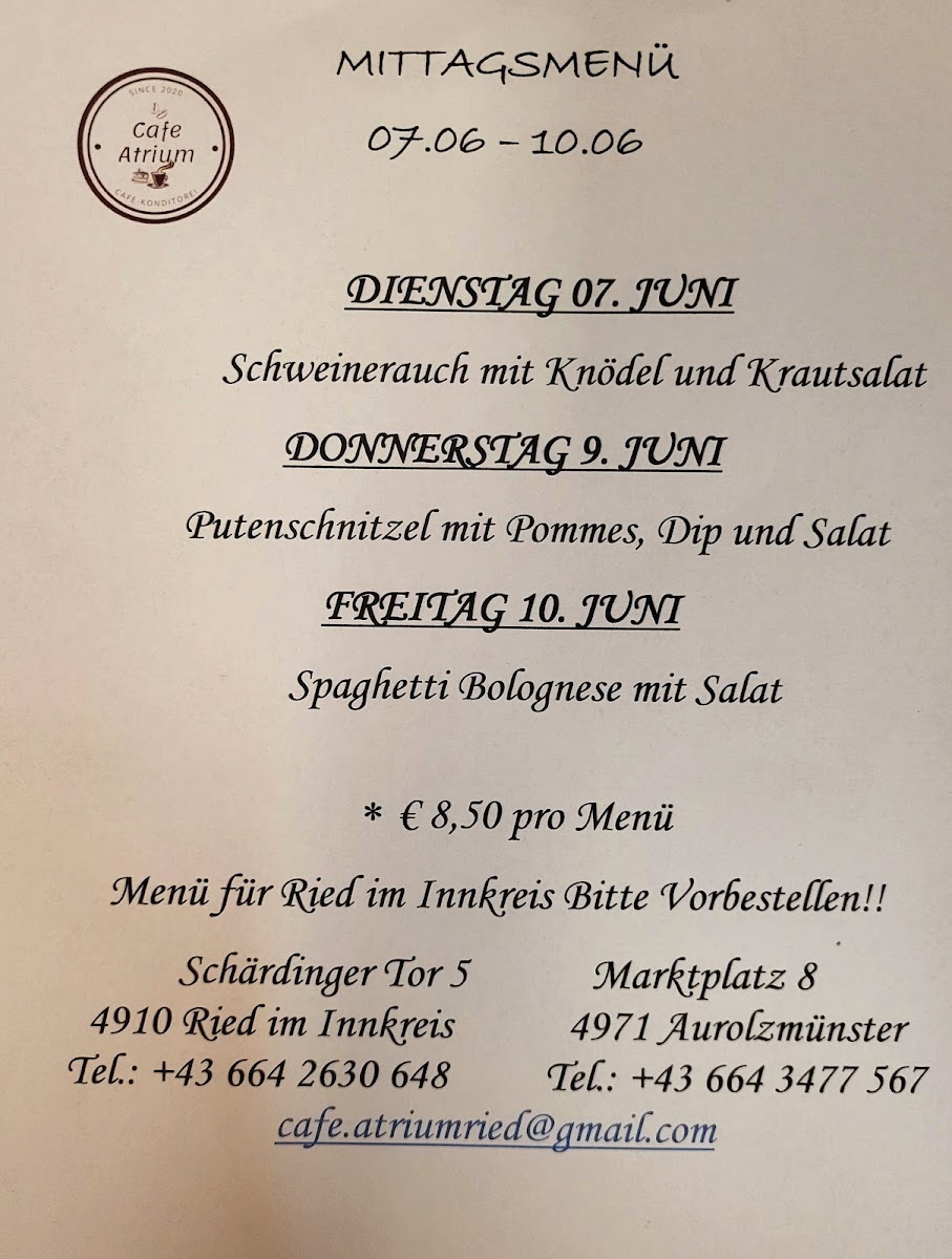 Welcome to Cafe, Konditorei, Bäckerei Atrium Ried, a delightful gem located at Schärdinger Tor 5 in Ried im Innkreis, Austria. This café seamlessly blends a warm atmosphere with exceptional cuisine, making it a beloved spot for locals and visitors alike. Patrons rave about their daily specials and the outstanding service, often highlighting the friendly staff who elevate the dining experience.